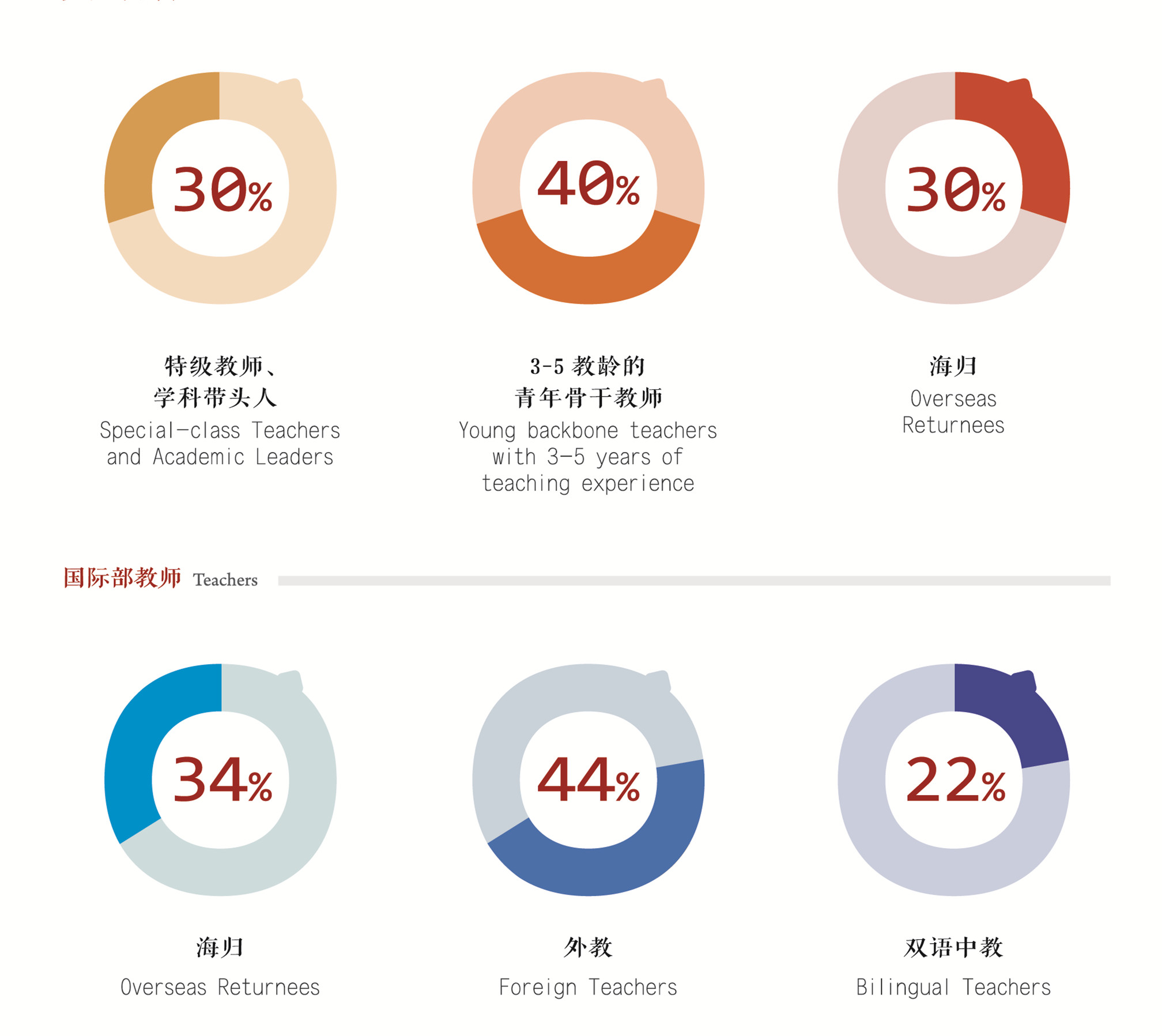 在青鳥同文,有超過35%的教師擁有碩博及以上學(xué)歷,30%以上教師擁有海外留學(xué)經(jīng)歷。在國際部教師構(gòu)成比例中,具有海外留學(xué)經(jīng)歷的教師占比34%,外教占比高達(dá)44%。此外,各學(xué)科特級教師、學(xué)科帶頭人以及青年骨干教師也成為了青鳥同文教育集團(tuán)的中堅(jiān)力量。