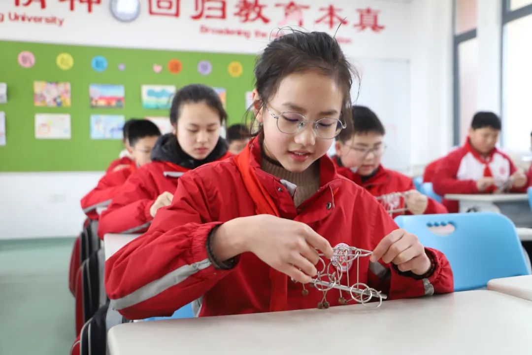 北附數(shù)學(xué)課引進(jìn)游戲化的方式,從一年級(jí)到六年級(jí),從七巧板、加減速算、24點(diǎn)到數(shù)獨(dú)、魔方、九連環(huán)……每個(gè)年級(jí)一個(gè)特色游戲。通過益智類游戲,輔助思維訓(xùn)練。