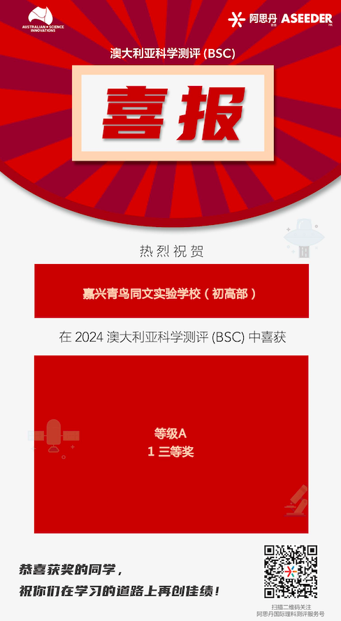 恭喜七年級的Cherry同學(xué),從我開始推薦澳大利亞科學(xué)測評(BSC)競賽時候的猶豫不決,到熟悉了歷年真題之后的決定報名,再到最終取得全國三等獎的好成績,對科學(xué)充滿熱情的她總是一步一步,穩(wěn)扎穩(wěn)打,水到渠成。
