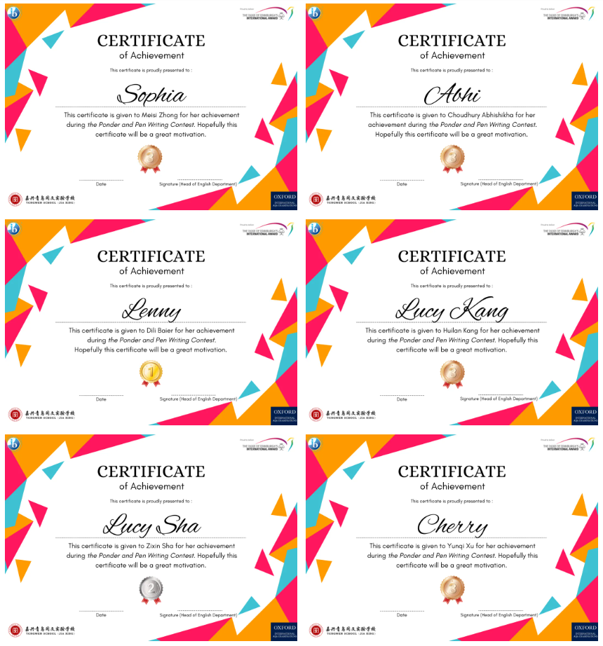 Thank you to all the participating students and teachers. Your efforts and enthusiasm made this competition exciting and successful. Regardless of the final outcome, you are all winners because you bravely expressed yourselves. We look forward to more students joining us next year!