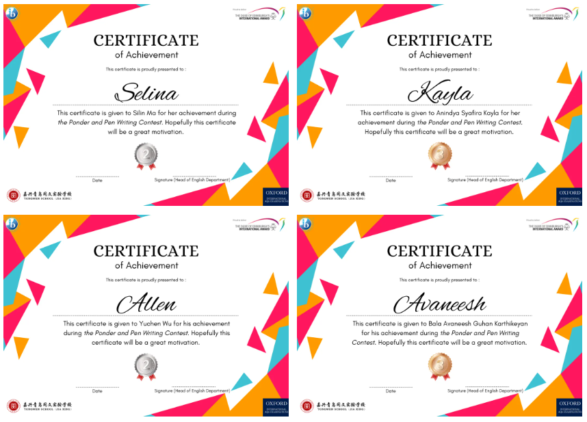 Writing is not only a way to express thoughts but also an important means to cultivate logical thinking and creativity. This competition has given every participant an opportunity to showcase themselves and has ignited their passion for reading and writing. Throughout the event, we were delighted to see many profound ideas in the entries, fully demonstrating the students' potential and talent.